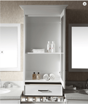 Make bathroom storage look glamorous with the Stafford vanity set series from Ariel Bath. The Stafford series includes light granite countertops mounted above espresso colored cabinets finished with satin nickel finish hardware. The matching framed mirrors accompanying this series round out the contemporary design for a completed look.