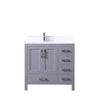 36" Dark Grey Single Vanity, White Carrara Marble Top, Square Sink, no Mirror