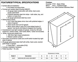 • Sliding Mirror Doors, 3/16in thick float glass mirror door with polished edges, 4 sides (2 typical) , Clear acrylic door pull (2 typical) , Mirror doors slide in gray PVC dual slotted tracks (2,typical / one top & one bottom) snapped into housing